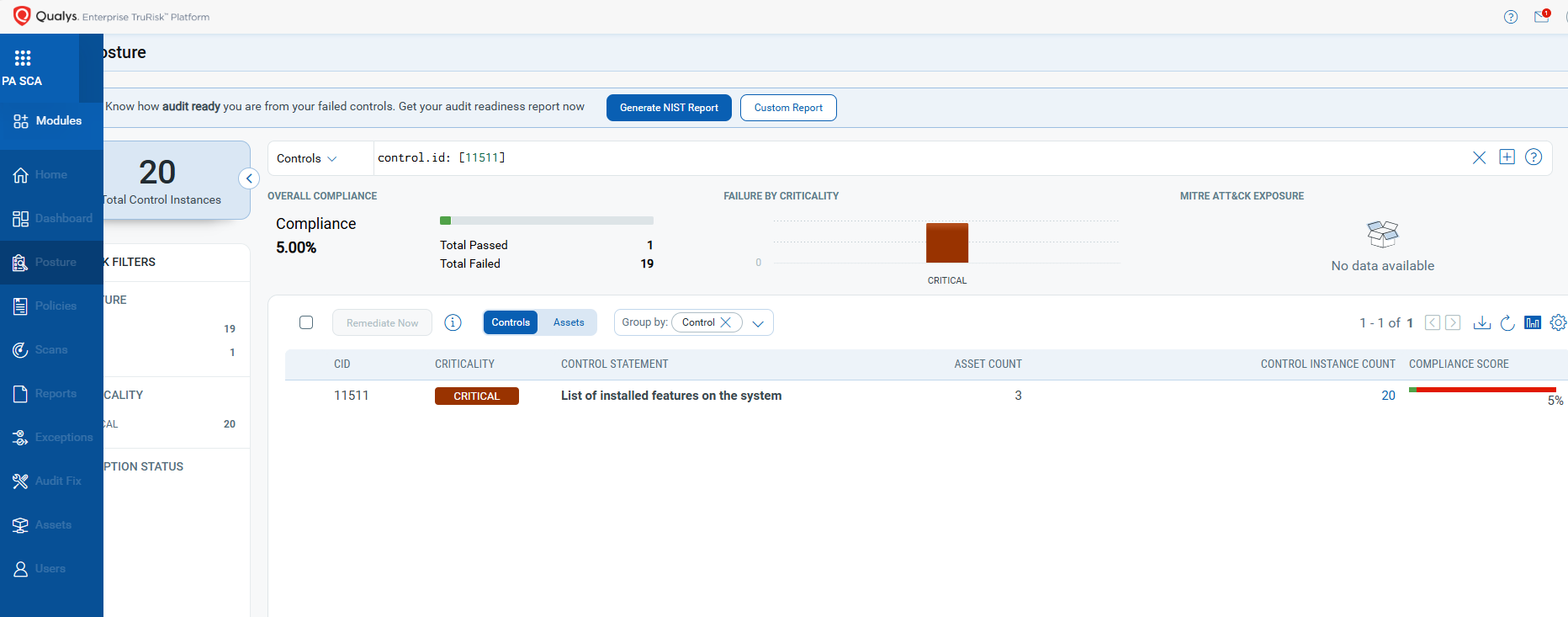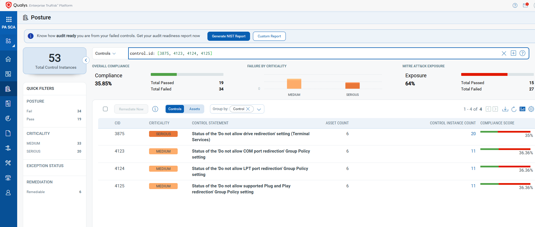 With Qualys Policy Audit’s Out-of-the-Box Mitigation or Compensatory Controls, reduce the risk of a vulnerability being exploited because the remediation (fix/patch) cannot be done now; these security controls are not recommended by any industry standards, such as CIS, DISA-STIG.